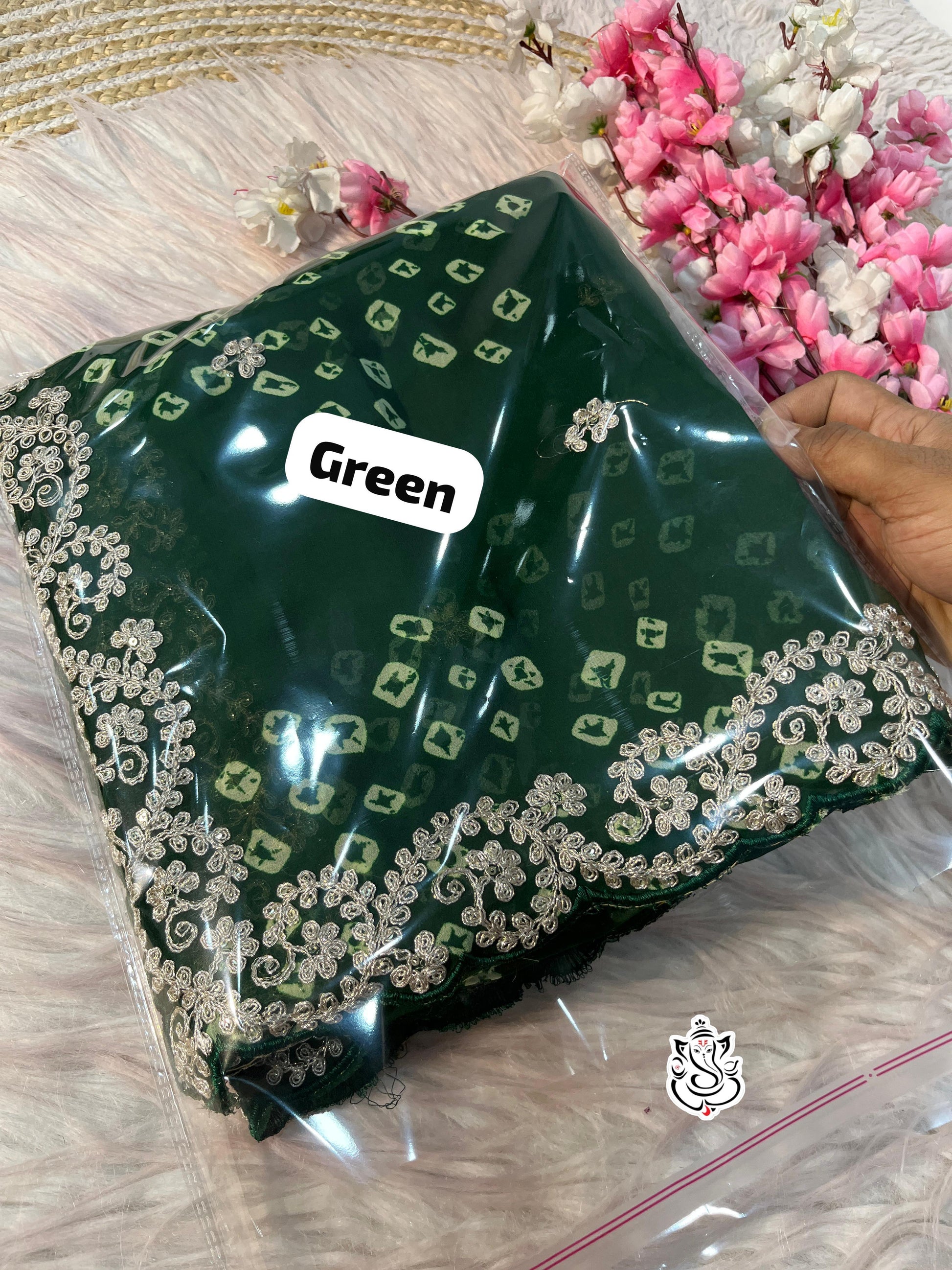 Fabric nd work :- beautiful soft c*c Georgette bandej multi color print saree with rich look pitta work with sequence work nd butti in whole saree