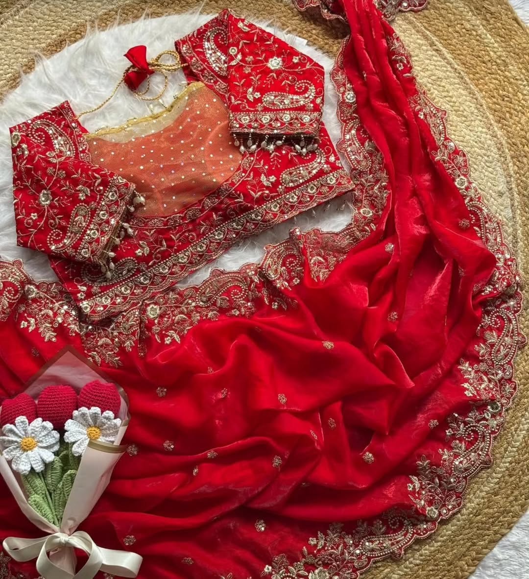 ✔️ Fabric: Premium Satin with Embroidery & Sequins