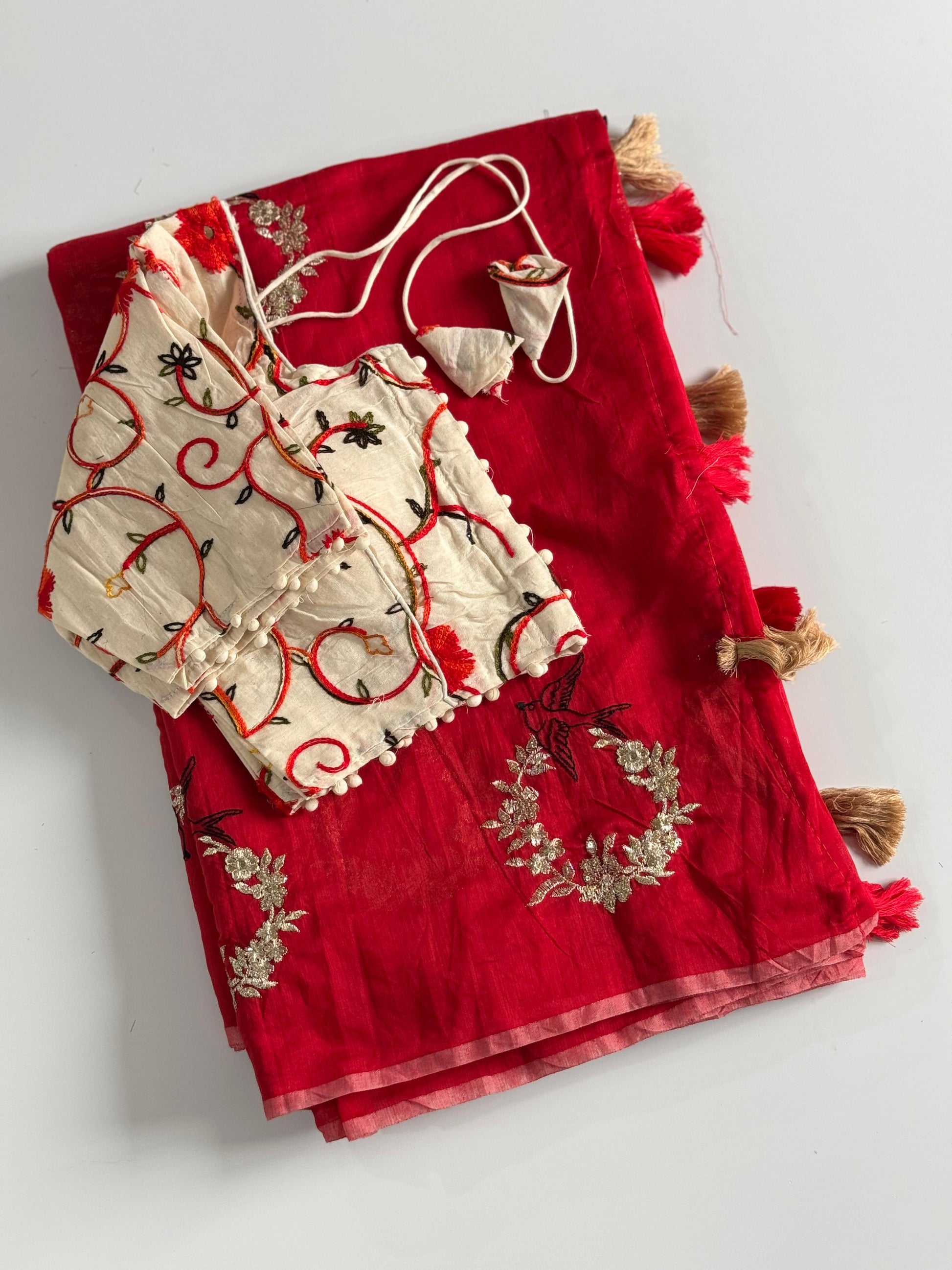 • Pallu: Enhanced with charming cotton tassels for a graceful finish