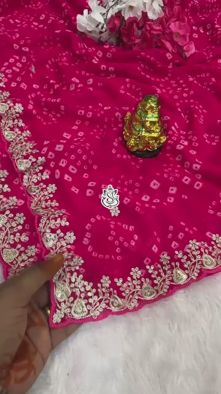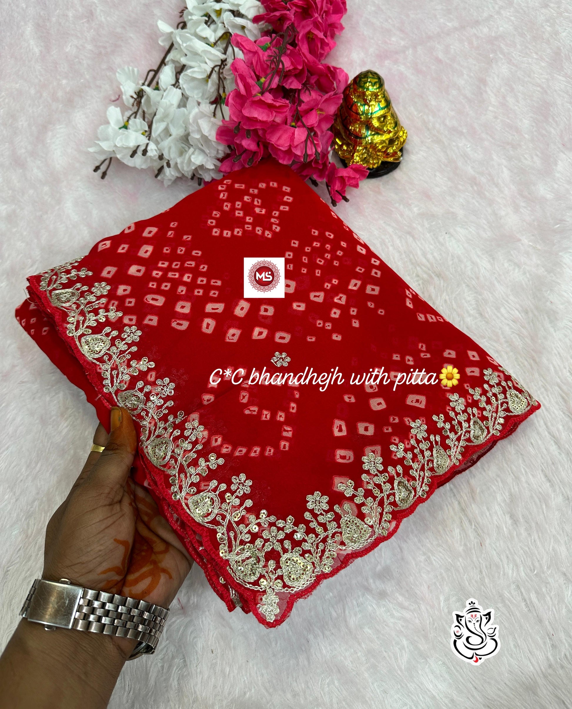 additional details-: saree have full original pita c.Pallu emb work..also having beautiful border cutwork border..also added with emb pita zari work blouse ..saree have extra ordinary sawan lehriya mill print pattern in best quality ..